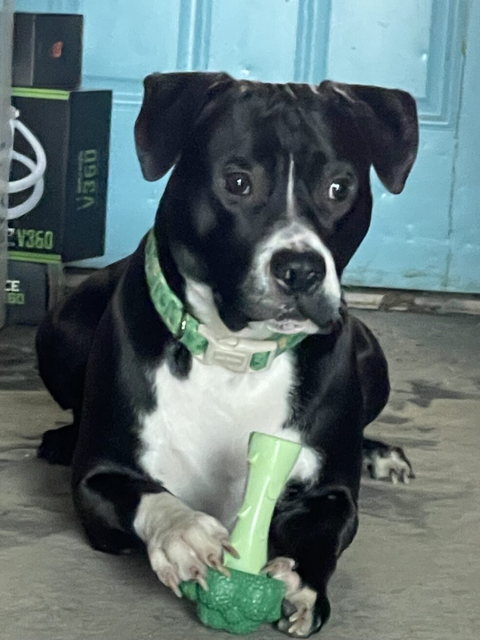 enjoying his birthday…broccoli? hey, we let him pick which toy he wanted! happy birthday, phyfe! (back on feb 19th, that is)