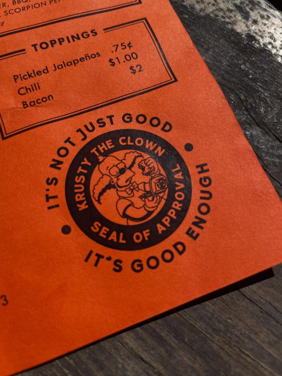 nik ordered a deep space homer, and os a spider pig. we also got grub, which we knew would be awesome because it came with a seal of approval as a guarantee: