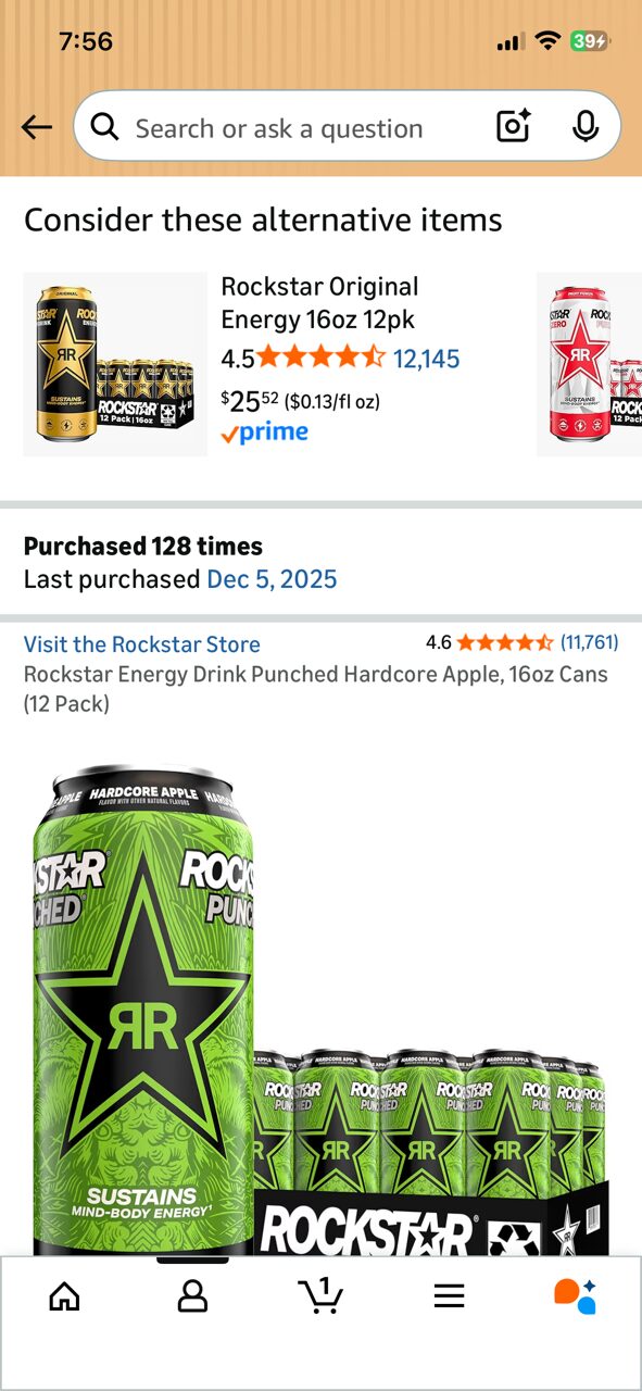 notice how many times it’s been ordered. i should note they’re tasty, 240mg of caffeine per can, and i limit myself to ONE can a day, and i barely have any caffeine otherwise. but for the last month my flavor has been AWOL, so i had to order pineapple last time (also yummy). saturday morning i took the screen shot you see above (specifically for this bit) and then i went to order the pineapple and got the same message. same with strawberry and watermelon. so i went to the actual brand website, and all flavors are still listed, but the way you’re supposed to get em…